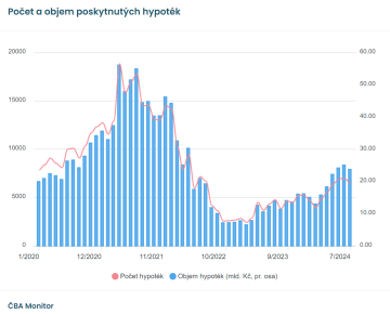 Po výrazném poklesu aktivity na hypotečním trhu v průběhu let 2022 - 2023 zájem Čechů o pořízení vlastního bydlení opět ožívá. Objem sjednaných úvěrů za červenec dokonce meziročně vzrostl na více než dvojnásobek. A to navzdory tomu, že úrokové sazby klesají pomaleji, než se očekávalo. Od září navíc přichází důležité novinky v oblasti předčasného splacení.