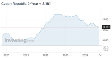 I v jejich případě již nyní nastává pokles očekávané výkonnosti. Například 2letý český státní dluhopis (viz přiložený graf) se nyní obchoduje s výnosem do splatnosti 3,2 %, před 12měsíci jste přitom obdobný cenný papír mohli nakoupit s výnosem na úrovni 5 %, přičemž před 24měsíci se dokonce obchodoval za 6,2 %. Lze tak říci, že období vysokých prakticky bezrizikových výnosů je u konce a klienti cílící na atraktivní zhodnocení se budou muset přesunout k rizikovějším nástrojům.