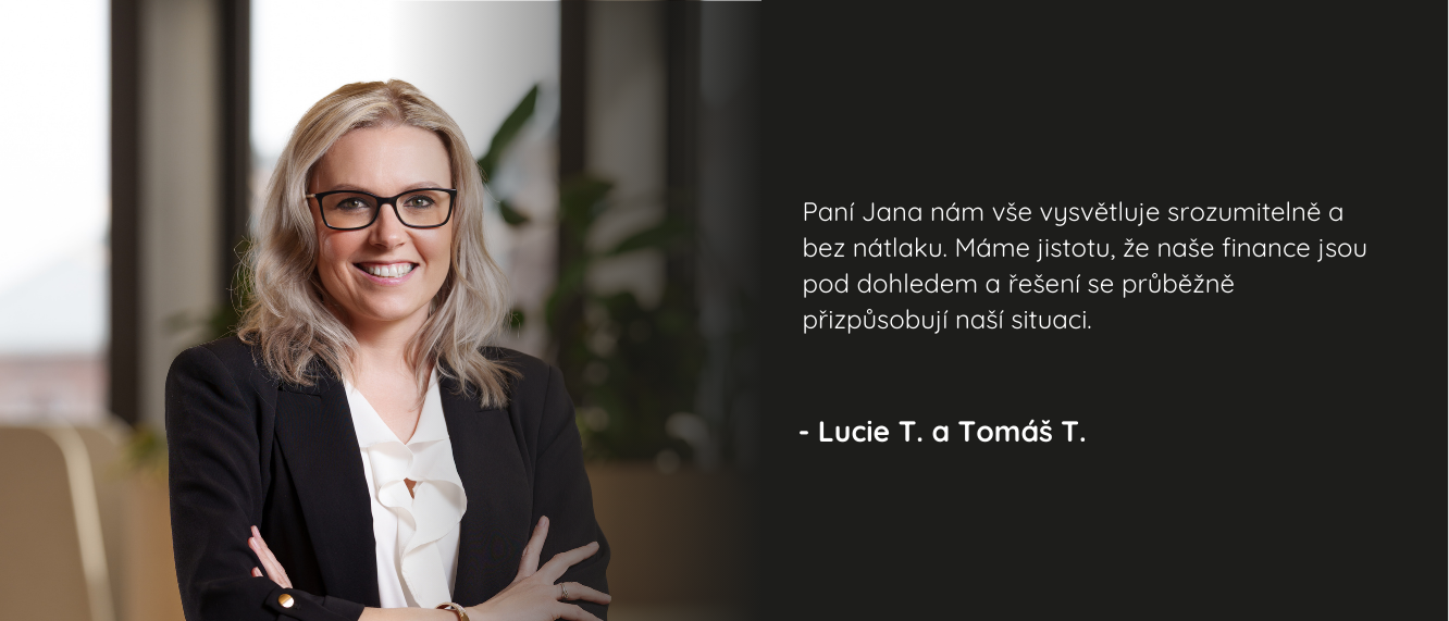 Klientům vysvětluji finanční témata lidsky a srozumitelně, bez zbytečných odborných výrazů. Mým cílem je, aby každé rozhodnutí bylo učiněno s pochopením, klidem a jistotou, že dává smysl nejen dnes, ale i do budoucna.
