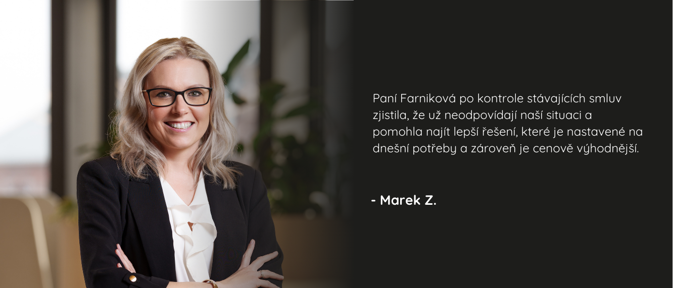 Zakládám si na otevřené komunikaci a dlouhodobých vztazích. Spolupráce pro mě nekončí podpisem smlouvy, ale pokračuje pravidelnou péčí, dostupností a ochotou řešit změny, které život přináší.